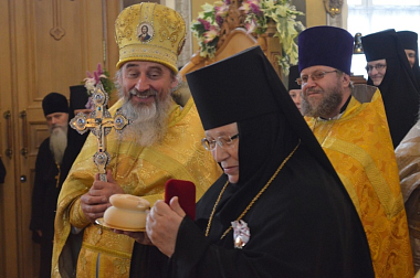 На малом входе епископ Матфей вручил игумении Ольге орден Русской Православной Церкви преподобной Евфросинии, великой княгини Московской, третьей степени. Этой высокой награды игумения Ольга удостоена указом Святейшего Патриарха Московского и всея Руси Кирилла во внимание к усердным трудам на благо Святой Церкви и в связи с 70-летием со дня рождения.