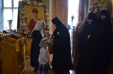 Епископ Матфей поздравил игумению Ольгу с днем тезоименитства и с высокой церковной наградой, пожелал здравия, спасения и многая и благая лета и подарил частицу мощей святой равноапостольной великой княгини Российской Ольги.