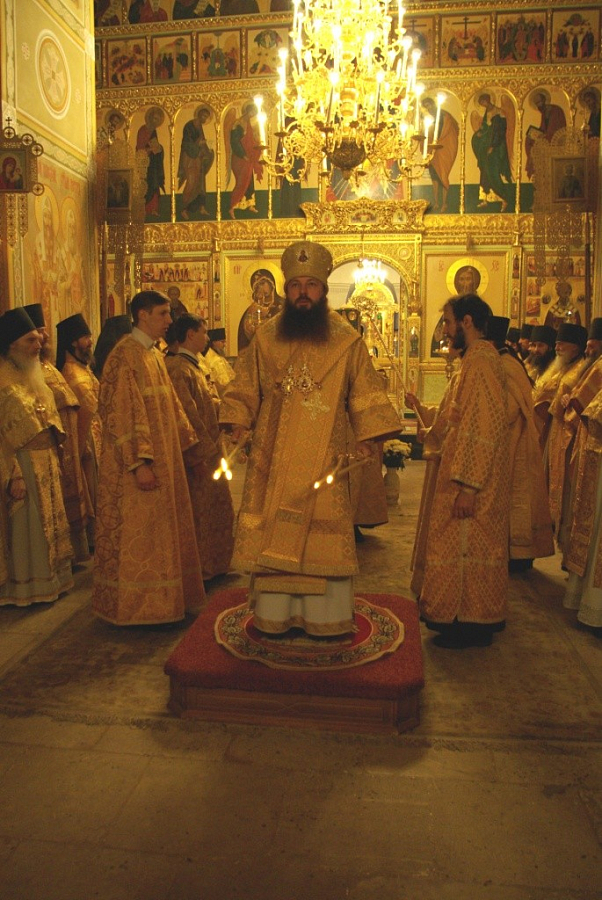 Его Преосвященству сослужили наместник Николо-Шартомского монастыря архимандрит Филипп (Понамарчук) с братией обители в священном сане.