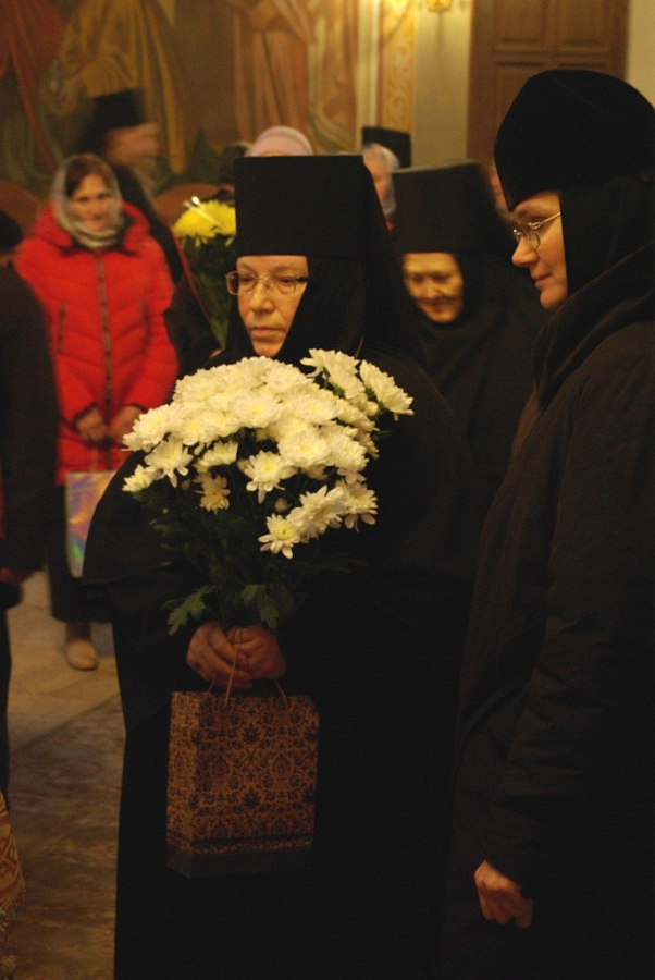 Также прибыла поздравить отца Филиппа и настоятельница Успенского Дуниловского женского монастыря игумения Ольга (Соколова).