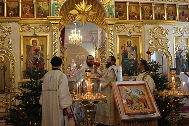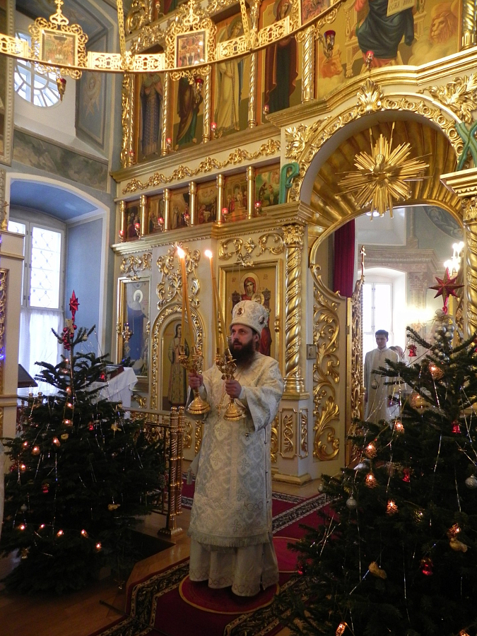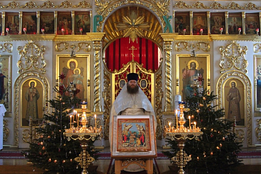 Его Преосвященству сослужили наместник Николо-Шартомского монастыря архимандрит Филипп (Понамарчук), благочинный Воскресенского кафедрального собора г. Шуи иерей Иоанн Чайкин, клирики обители.