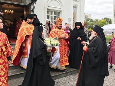 По окончании богослужения Преосвященнейший владыка отслужил торжественный молебен с крестным ходом вокруг храма и прочитал молитву ко святым мученицам.