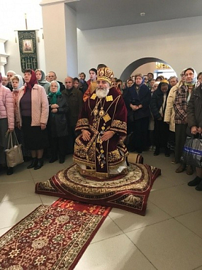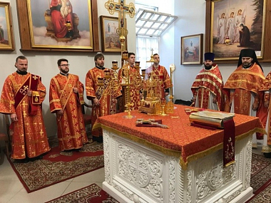 Его Преосвященству сослужили: архимандрит Александр (Заркешев), секретарь епархиального управления иеромонах Онуфрий (Ларин), протоиерей Алексий Качапкин, иереи Сергий Лявда и Евгений Воробьев.