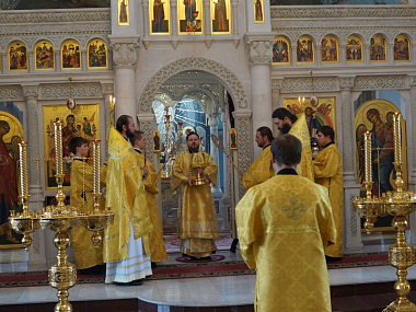 5 октября 2016 года. Епископ Тарусский Серафим, викарий Калужской епархии, совершил Божественную литургию в Свято-Никольском Черноостровском монастыре города Малоярославца.