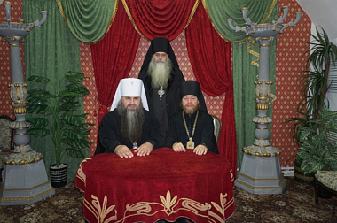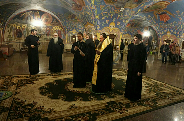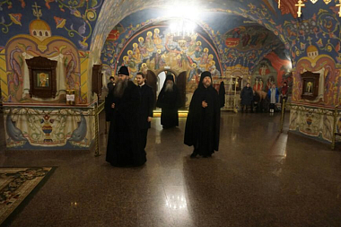 Вместе с митрополитом Нижегородским и Арзамасским Георгием Его Преосвященство помолился в Успенском храме обители у иконы Божией Матери «Печерская», перед которой владыка Георгий совершил краткий молебен.