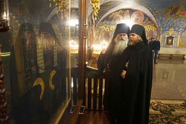 Настоятель Печерского монастыря архимандрит Тихон (Затёкин) познакомил епископа Тихона с еще одной святыней, находящейся в Успенском храме, – иконой преподобного Макария Желтоводского работы Симона Ушакова.