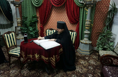 Затем в расположенном в монастыре церковно-археологическом музее Нижегородской епархии архимандрит Тихон рассказал гостю об истории обители. Владыка Тихон оставил запись в книге почетных посетителей.