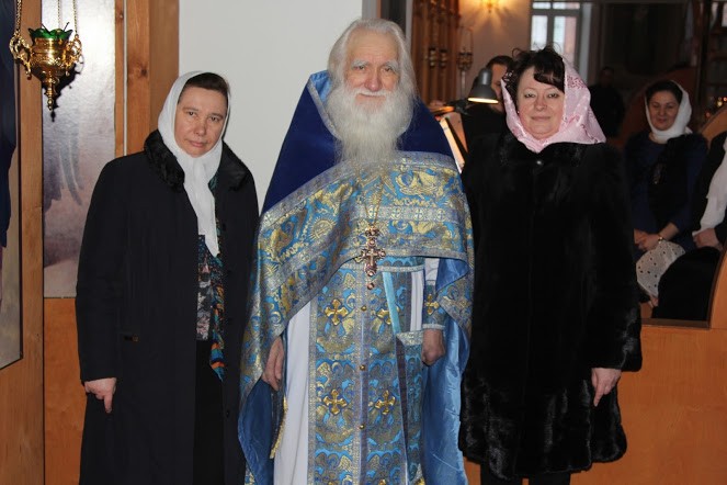 Игумения Иустина с сестрами обители пожелали о. Афанасию всесильной помощи Божией, здравия и спасения, крепости душевных и телесных сил на многая лета и преподнесли ему букет цветов и ковчег для святых мощей.