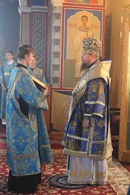 Его Преосвященству сослужили: духовник монастыря архимандрит Афанасий (Культинов), благочинный Ермишинского благочиния протоиерей Димитрий Культинов, благочинный Кадомского благочиния протоиерей Сергий Сорвачев, настоятель Покровского храма с. Кочемирово протоиерей Игорь Бухаринов, настоятель Никольского храма с. Котелино протоиерей Сергий Карлышев, настоятель Архангельского храма п. Ермишь иерей Николай Антонов; клирик Кадомского монастыря иерей Михаил Егоров, настоятель храма в честь Святой блаженной Матроны Московской п. Кустаревка иерей Вячеслав Пименов, настоятель Успенского храма с. Огорево-Почково иерей Александр Смирнов, настоятель Успенского храма с. Мердушь иерей Антоний Ефимов, настоятель Никольского храма с. Некрасовка Ермишинского района иерей Владимир Повод, настоятель Казанского храма с. Восход иерей Андрей Войтко, секретарь епархиального управления диакон Тимофей Щипачев и клирик Рязанской епархии диакон Геннадий Богомолов.