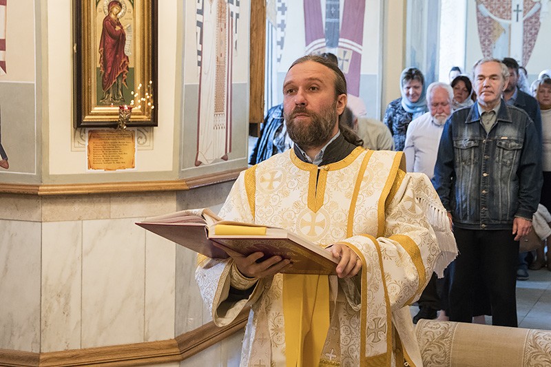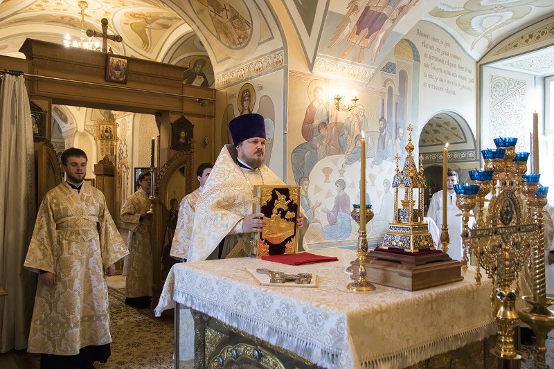 Проповедь перед Причастием прочитал ключарь Алексиевского собора Алексиево-Акатова монастыря протоиерей Петр Голенских.