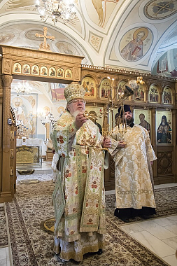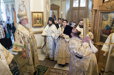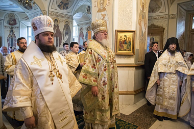 Его Высокопреосвященству сослужили: епископ Борисоглебский и Бутурлиновский Сергий, секретарь Воронежского епархиального управления протоиерей Андрей Скакалин, благочинный монастырского церковного округа иеромонах Алексий (Сукачев) и клирики соборного храма обители.