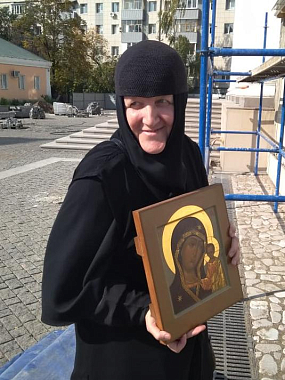 В святых местах сестры с молитвой освящают привезенный с собой список Казанской иконы Божией Матери. Этот современный список был выполнен по сохранившейся древней, в меру, прориси реставратором Свято-Троицкой Сергиевой Лавры Ириной Крипальской в 2017 году.