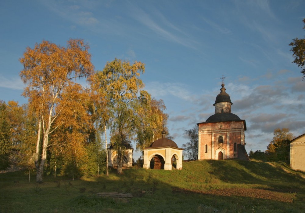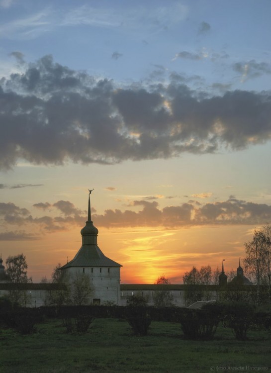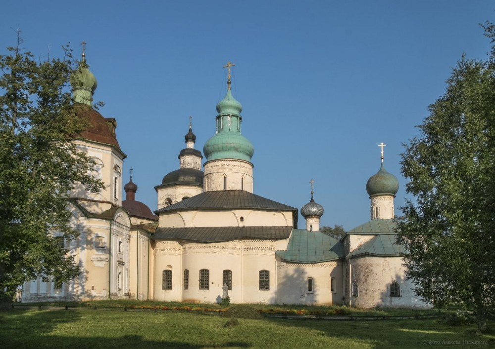 После того как Феодор стал архиепископом Ростовским, в 1388 году симоновским архимандритом становится преподобный Кирилл. Однако вскоре он оставляет свое настоятельство и затворяется в келии. Как сообщает житие преподобного, однажды ночью за акафистом он слышит голос Божией Матери: «Кирилл, выйди отсюда и иди на Белоозеро. Там я уготовала тебе место, где можно спастись». В Белозерье святой Кирилл отправился вместе с другим симоновским монахом Ферапонтом. На берегу Сиверского озера на указанном Богородицей месте преподобный Кирилл ископал свою пещеру и продолжил молитвенный подвиг. Так в 1397 году было положено начало монастыря Пречистой Богородицы, известного далее как Кирилло-Белозерский. Ферапонт вскоре удалился на 15 верст от Кириллова, основав свой монастырь. В одиночестве Кирилл оставался недолго. Вскоре к нему присоединились двое из местных и три монаха из Симонова. Устав Кириллова монастыря был очень строг. К моменту преставления прп. Кирилла число братии составило 53 человека. Обитель рано стала одним из важнейших книжных центров России. Многие из сохранившихся храмов были отстроены в камне на исходе правления Василия III. В 1528 году этот правитель приехал в Кирилловский монастырь с княгиней Еленой Глинской молиться о даровании наследника. Последовавшее за этим рождение сына – будущего царя Ивана Грозного – в глазах современников связывалось с заступничеством преподобного Кирилла Белозерского. Иван Васильевич на протяжении всей своей жизни питал к Кириллову монастырю особое пристрастие, считая себя обязанным ему своим рождением. Монастырь богател, разрастался и стал крупнейшим средоточием каменных построек на севере Русского государства и крупнейшим церковным землевладельцем. Никон, Патриарх Московский, был сослан сюда в 1676 году и провел здесь последние 5 лет своей жизни. В 1764 указом Екатерины II обитель была лишена крестьян и угодий. Через 12 лет из монастырской слободы был образован город Кириллов. В сентябре 1918 года большевиками был расстрелян настоятель монастыря Варсонофий (Лебедев), епископ Кирилловский. После упразднения монастыря ризница была подвергнута разорению; наиболее ценные иконы и другие произведения искусства были вывезены в музеи Москвы и Ленинграда. В 1924 году в стенах монастыря был открыт музей-заповедник. В 1997 году, в год празднования 600-летия монастыря, часть монастырской территории была передана Вологодскому епархиальному управлению. В церкви Кирилла под спудом пребывают мощи прп. Кирилла Белозерского – главная церковная святыня обители. В настоящее время монастырь и музей соседствуют