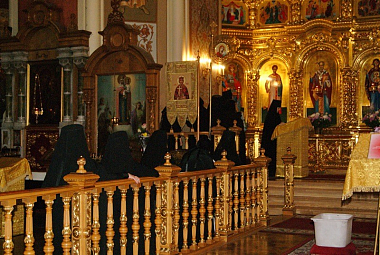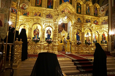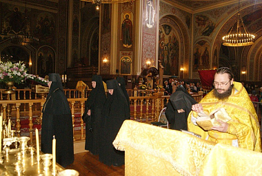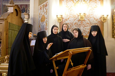 Церковные песнопения исполнил византийским распевом хор насельниц.