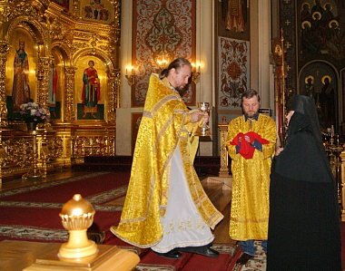 Игумения Неонилла и насельницы приложились к святым мощам и причастились Святых Христовых Таин, раздали прихожанам вынутые на Литургии монастырские просфоры.