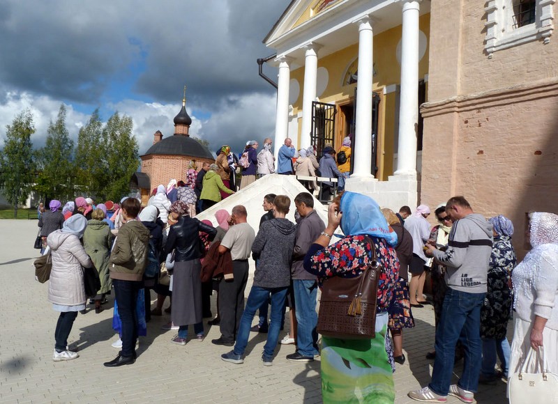 С утра в стенах святой обители собрались жители этого древнего города, чтобы приложиться к известной общехристианской реликвии. Для города Старицы принесение столь значимой святыни – уникальное событие.