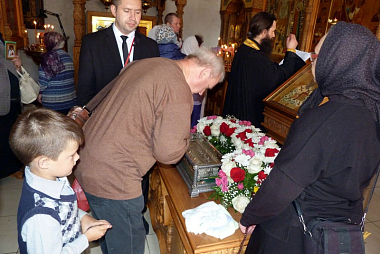 В течение дня перед святыней в храме святой обители совершались молебны с чтением акафиста святителю Спиридону Тримифунтскому.