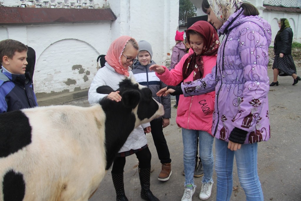 Во время квеста одна из групп при посещении нижней территории монастыря познакомилась с монастырскими животными – коровами и собаками.
