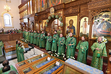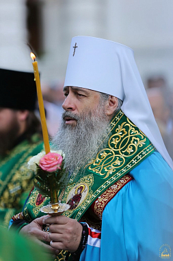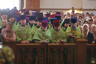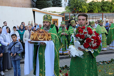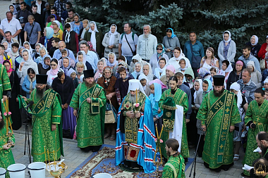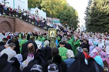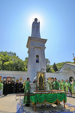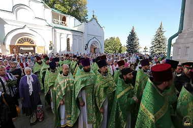 После молебна состоялась встреча митрополита Донецкого и Мариупольского Илариона, который возглавил праздничную Литургию. Священноархимандриту Лавры сослужили: митрополит Святогорский Арсений, митрополит Горловский и Славянский Митрофан, митрополит Изюмский и Купянский Елисей, архиепископ Макеевский Варнава, архиепископ Северодонецкий и Старобельский Никодим, архиепископ Бердянский и Приморский Ефрем, епископ Иннокентий (Шестопаль), епископ Александрийский и Светловодский Боголеп, епископ Добропольский Спиридон, а также лаврское духовенство, монахи и священники из разных епархий Украинской Православной Церкви. Всего в праздничной Литургии участвовали более 450 священников и 20 диаконов.