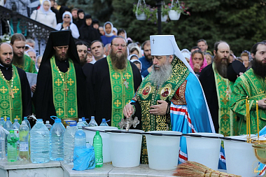 В день праздника после ранней Божественной литургии во дворе обители у фонтана митрополит Арсений совершил водосвятный молебен преподобному Иоанну отшельнику. Затем наместник Лавры обратился к собравшимся со словом.