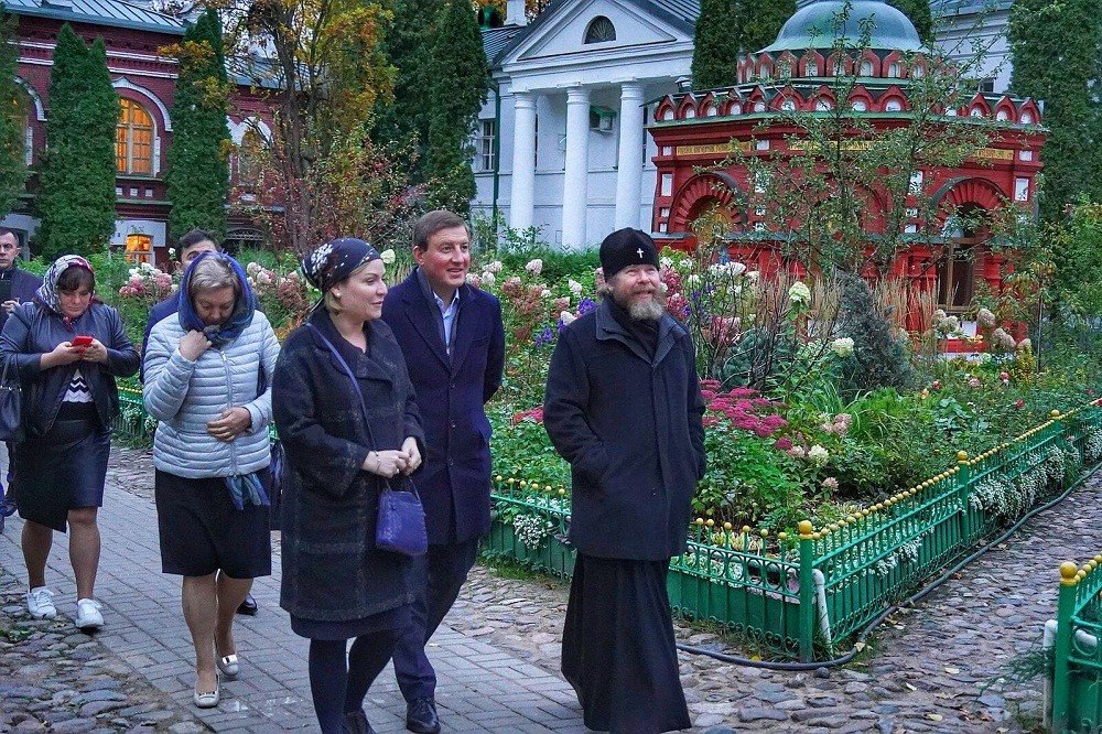 В сопровождении игумена монастыря митрополита Псковского и Порховского Тихона гости посетили Богом зданные пещеры, Успенский и Сретенский храмы, приложились к мощам преподобного Симеона Псково-Печерского.