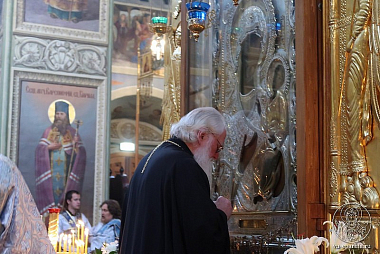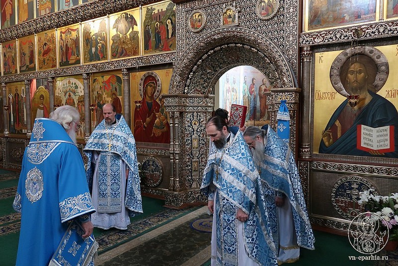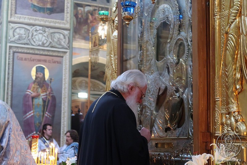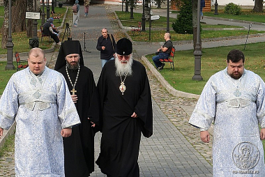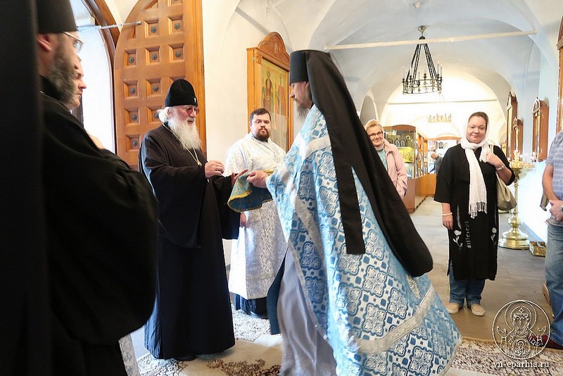 Его Высокопреосвященству сослужили наместник Иверского монастыря иеромонах Антоний (Битьмаев) и насельники монастыря иеромонахи Борис (Григорьев) и Пантелеимон (Шахтахтинский).