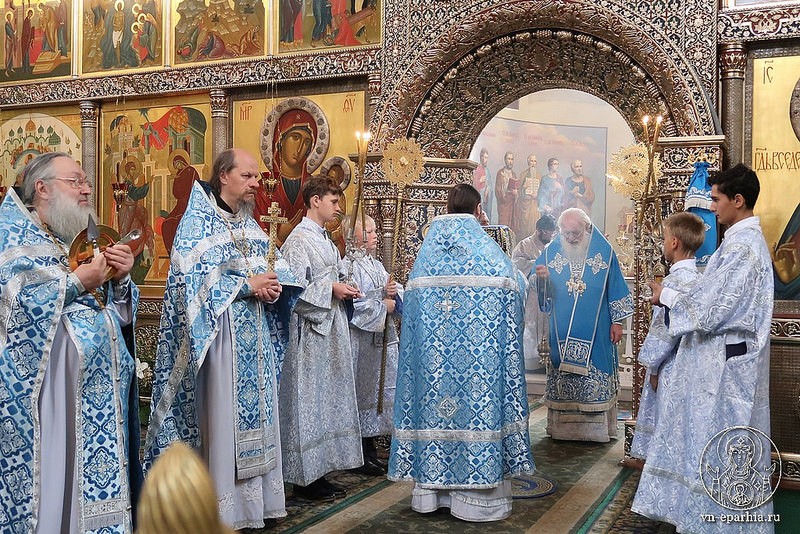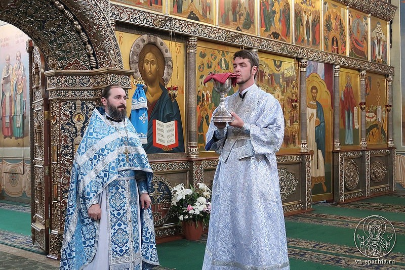 Богослужение сопровождалось пением мужского хора Новгородского духовного училища под управлением регента диакона Андрея Каурова.
