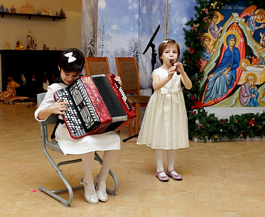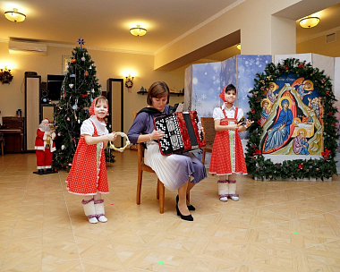 «По всему лицу Земли торжественно шествует праздник Христова Рождества! Пришел этот светлый день и в ваш прекрасный дом, где под благословенным покровом матушки Амвросии вы растете добрыми христианами, не оскудевающими в творческом желании творить добро и радовать близких своими прекрасными выступлениями и успехами в учебе, приносящей новые и новые знания, которые вы будете щедро дарить миру – во славу Божию и на радость людям».