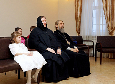 Воспитанницы настоятельницы монастыря игумении Амвросии (Соломатиной) всегда готовят к встрече с владыкой Алексием особый подарок – красочную концертную программу, в основе которой – музыкальные произведения мировой и русской классики. Наряду с малышами выступают дети постарше, их наставники и сама настоятельница.