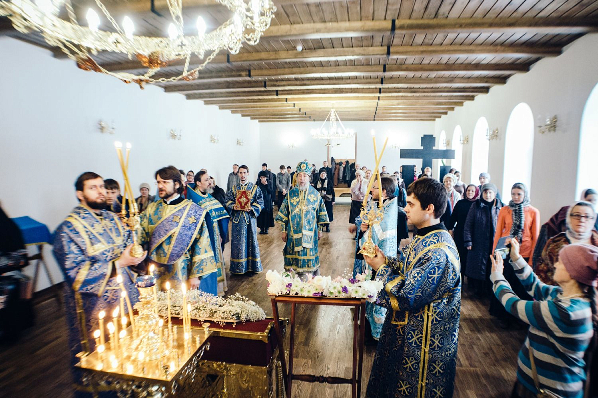 «Дорогие братья и сестры! Дорогая матушка! Поздравляю вас с днем памяти преподобномученицы Екатерины, которая освятила эту землю своей кровью. Не только кровью, но и любовью ко Христу. В начале XX века на Симбирской земле кровь лилась ручьями. Ни один город так не пострадал от безбожной власти, как пострадал город Симбирск. Тысячи людей здесь засвидетельствовали веру во Христа и сохранили верность традициям, которым были верны предшествующие поколения. Среди исповедников земли Симбирской яркой звездой сияет на небосклоне церковном святая преподобномученица Екатерина. Эта мудрая девушка, решившая посвятить себя служению Богу, в годы гонений могла скрыться из монастыря и в какой-нибудь глухой деревне спасаться, молиться, но она не отреклась от Господа и исповедала веру во Христа. Эта земля в те годы напоминала жерло бесовское. Она была осквернена рождением предшественников антихриста, от рук которых и пострадали новомученики и исповедники Церкви Русской. Их кровью Господь освятил эту землю, даровал нам возможность возвратиться к тем духовным началам, от которых враг рода человеческого хотел отрешить этот город и всю российскую землю. Господь сказал: “Я создам Церковь Мою, и врата ада не одолеют ее“. Мы, правоприемники той духовной благодати, должны помнить о тех, кто сейчас предстоит у Престола Божия и молится за нас. Мы не так сильны духом, как они. Они коснулись той духовной старины, которая была у наших предков, получили духовный заряд, который впоследствии выразили во всецелом послушании Господу и в своей мученической кончине. Мы с вами другие. Мы впадаем в уныние, отчаяние. Когда наши мелочные вопросы не решаются, мы начинаем роптать, возмущаться и проявлять недоверие к Господу. Дай Бог, чтобы молитвами наших заступников Господь укрепил нашу веру, даровал нам силы для несения нашего жизненного креста и памятование о том, что Господь всегда с нами. От нас требуется только любящее сердце. Требуется стремление к Богу, каким горела преподобномученица Екатерина и миллионы других людей, которые в 20-е, 30-е, 60-е годы засвидетельствовали веру во Христа. Мы не знаем, какие испытания будут в нашей жизни. Каждый человек однажды должен будет сказать: “Господи, я люблю Тебя“, – или: “Господи, не знаю Тебя“. “Не знаю этого человека“, – сказал однажды апостол Петр. Но не так ли поступаем мы? Почти всегда мы выбираем не вечное, но земное, то, что кажется нам лучшим здесь и сейчас. Мы отворачиваемся от Господа, отрекаемся от Него. Дай Бог, чтобы Господь не застал нас в этих отречениях. Чтобы, в конце концов, мы вместе с апостолом Петром и вместе с теми, кто пострадал за веру Христову, могли сказать: “Да, Господи, я люблю Тебя“. К каждому из нас обращается Господь. Он обращался и к преподобномученице Екатерине, и нам, стоящим здесь сегодня, задает вопрос: “Любишь ли ты Меня?“ Любовь к Богу мы должны проявлять в нашей повседневной жизни. Только через любовь человек получает спасение и наследует жизнь вечную. Там, где ненависть и вражда, где один человек хочет господствовать над другими людьми, там нет Бога. “Блаженны нищие духом, ибо их есть Царствие Небесное“. Дай Бог всем нам в предстоящие дни святого поста ступить на ступень смирения, чтобы чуть-чуть приблизиться к Богу, приблизиться к нашим святым заступникам. Наши молитвы услышаны Богом благода
