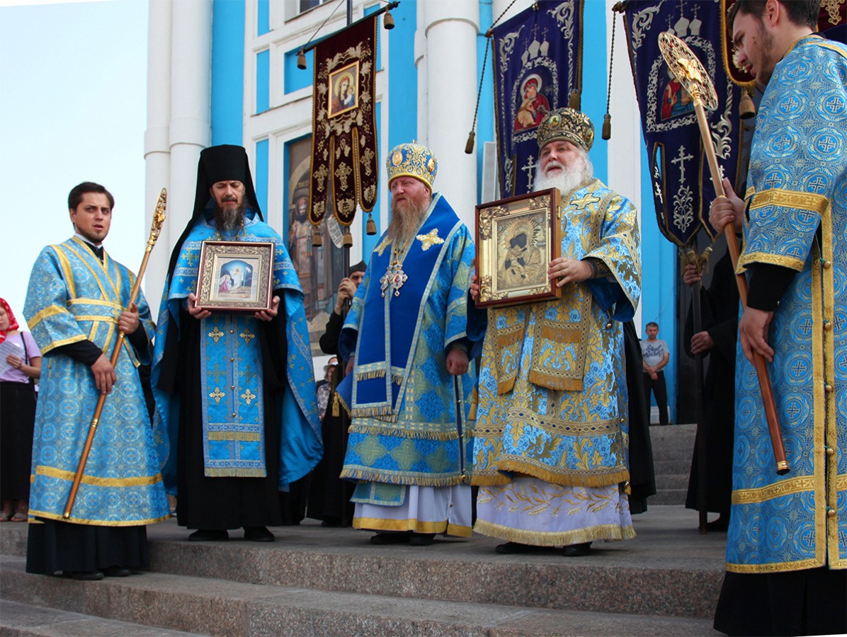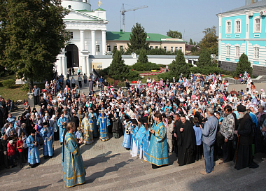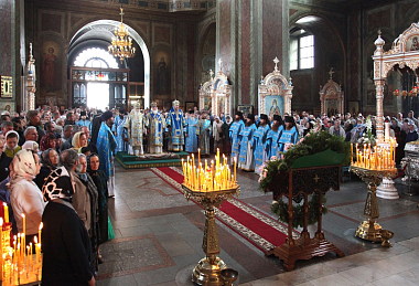Митрополит Арсений подчеркнул, что не зря наши благочестивые предки в лихолетья и нашествия иноземных захватчиков смогли сохранить свои святыни, для которых последующие поколения воздвигли храмы, часовни и обители, в том числе и этот величественный Владимирский собор, что свидетельствует всем живущим о ходатайстве Матери Божией пред Богом за православный народ древнерусской земли.