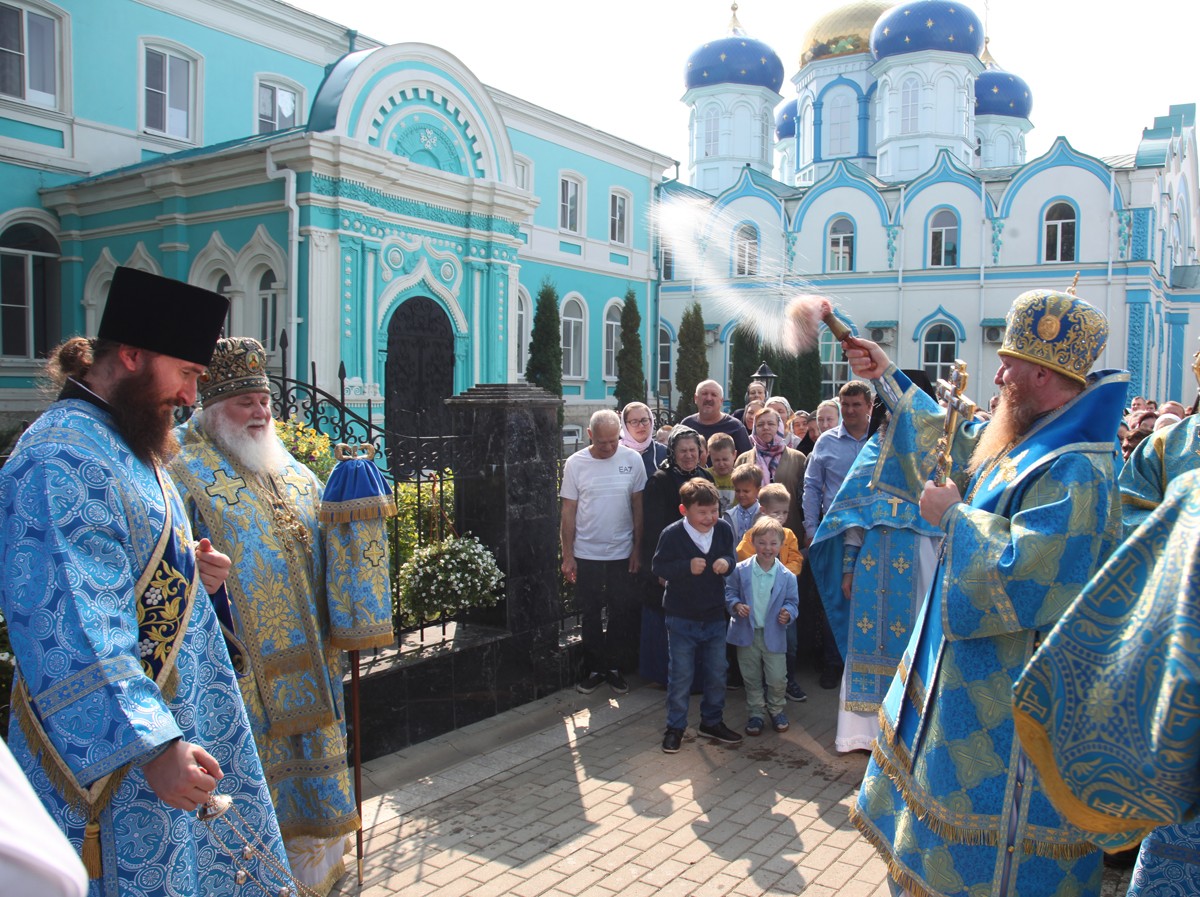 Его Высокопреосвященству сослужили: митрополит Никон (Васин), викарий Липецкой епархии епископ Усманский Евфимий, благочинный обители архимандрит Трифон (Голубых); иеромонахи: Александр (Лавинский), Гавриил (Мельников), Иннокентий (Митин), Серафим (Пеньков), Ипатий (Хомицкий), Даниил (Ведмедь), Михаил (Темников), Макарий (Алифанов), Тихон (Дмитриев), Ферапонт (Цыпленков), Савва (Шевченко), Антоний (Киреев); иеродиаконы: Паисий (Боев), Антоний (Корнеев), Марк (Гречаный), Александр (Мантров), Ираклий (Гарькавый), Петр (Голубятников), Иордан (Крылов), Лаврентий (Подколзин), Феодорит (Сухинин); клирик обители диакон Николай Рошко и клирик храма Благовещения Пресвятой Богородицы в Раеве г. Москвы иерей Максим Хелемендик.