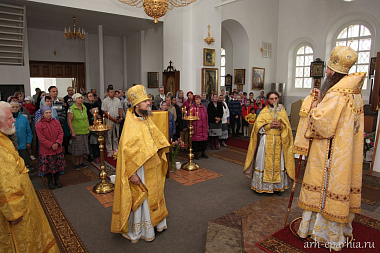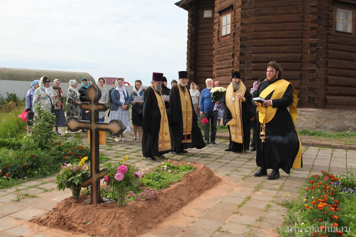 Завершая визит в Пинежское благочиние, митрополит Даниил совершил заупокойную литию на могиле приснопоминаемого иеромонаха Артемия (Котова), погребенного за алтарем Петропавловского храма в Карпогорах.