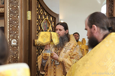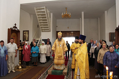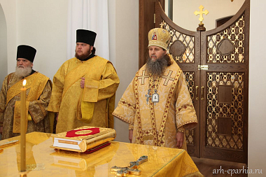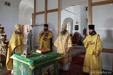 За богослужением в Казанском храме Артемиево-Веркольского монастыря митрополит Даниил наградил священника Симеона Арнаутова правом ношения камилавки.