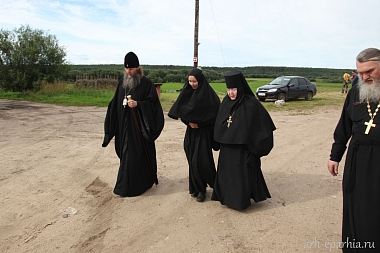 По окончании Литургии Владыка посетил монастырские строения в Суре, настоятельница обители игумения Митрофания (Миколко) рассказала архипастырю о том, как идет восстановление святынь на родине святого праведного Иоанна Кронштадтского.