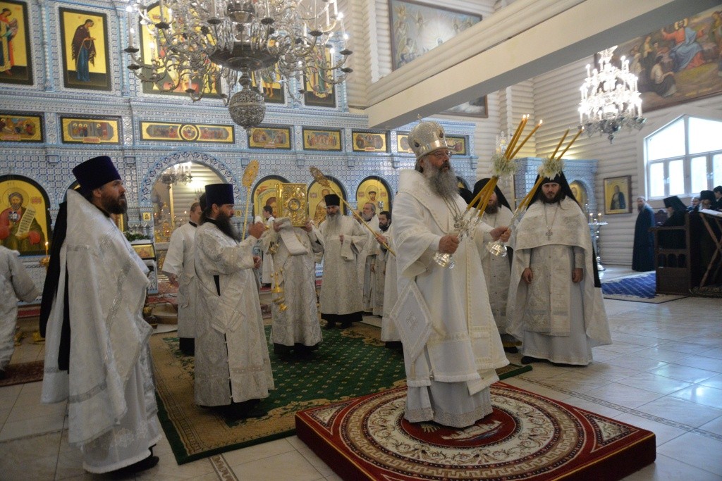 Архипастырю сослужили секретарь епархиального управления Екатеринбургской епархии иеромонах Кирилл (Корытко), руководитель епархиального отдела социального служения протоиерей Евгений Попиченко, братия монастыря в священном сане и духовенство Екатеринбургской епархии.