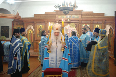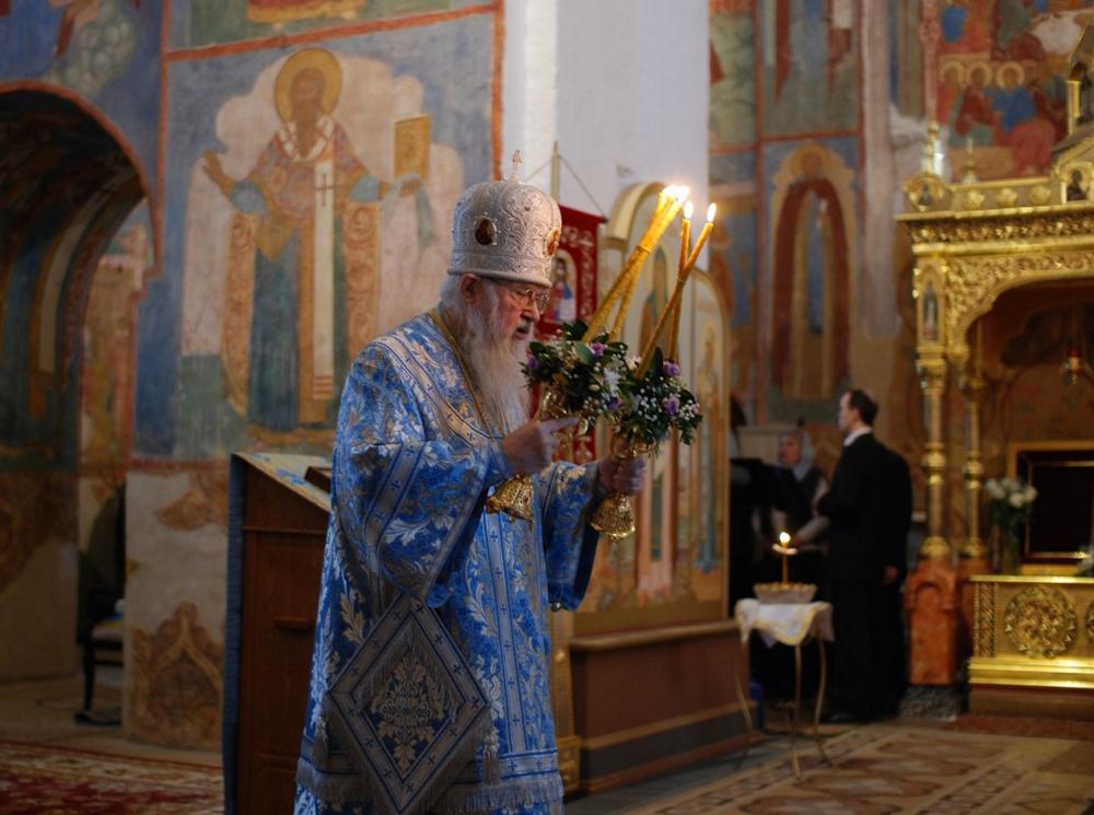 «Какой смысл сегодняшнего нашего моления? Совершенно солнечный смысл. Пресвятая Владычица поставила нам образец жизни, своим смирением и молитвой показав нам пример соединения с Богом.