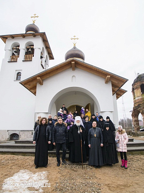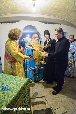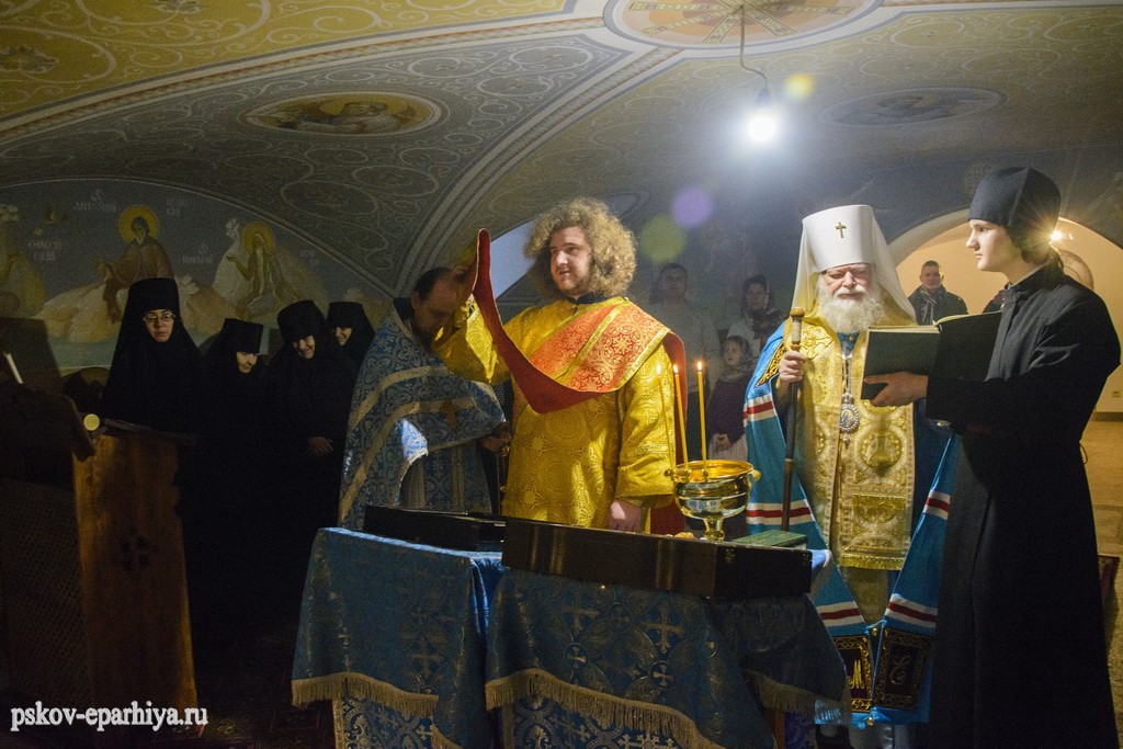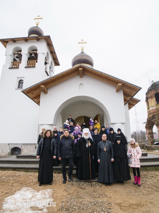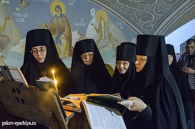 Накануне вечером псковский архипастырь прибыл в Свято-Троицкий Творожковский женский монастырь. Владыку встречала старшая сестра обители монахиня Магдалина (Бусыгина) с насельницами.