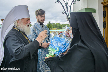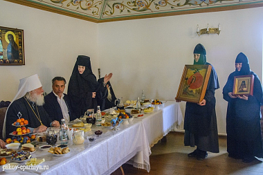За непрестанное архипастырское попечение владыку митрополита поблагодарила настоятельница обители монахиня Анна (Ткач) и преподнесла митрополиту Евсевию образ пророка Божия Илии, а также пожелала Его Высокопреосвященству многая и благая лета.