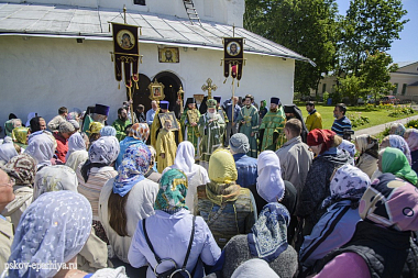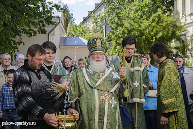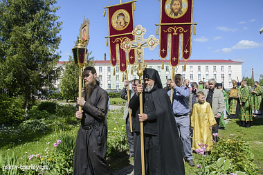 По окончании Божественной Литургии Владыка митрополит возглавил праздничный молебен с крестным ходом, в завершение которого прочел молитву святому Иоанну Предтече, испрашивая его помощи в деле покаяния для всех молящихся. Затем были пропеты праздничные величания Святой Троице и Иоанну Крестителю, а также провозглашены традиционные многолетия.