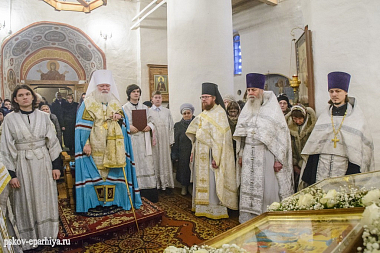 Его Высокопреосвященству сослужили наместник обители игумен Савва (Комаров) с братией обители в священном сане, а также клирики митрополии.