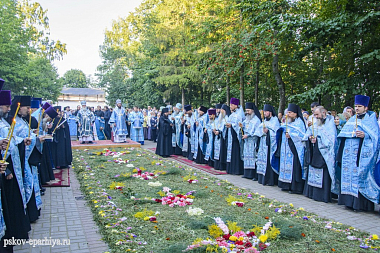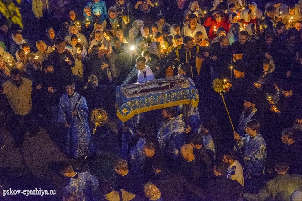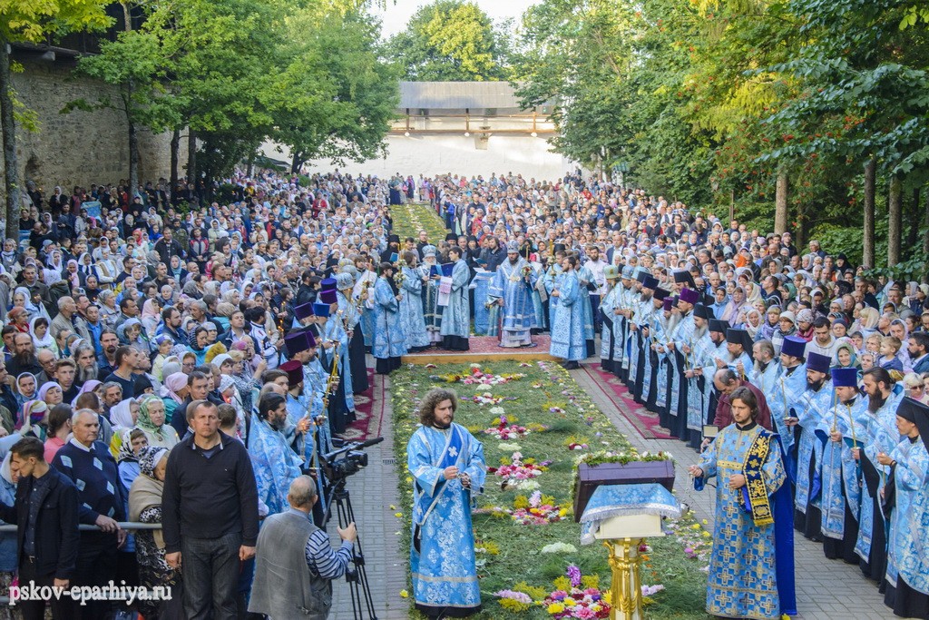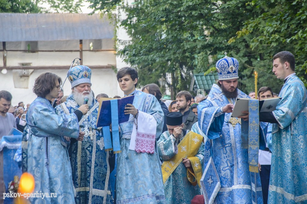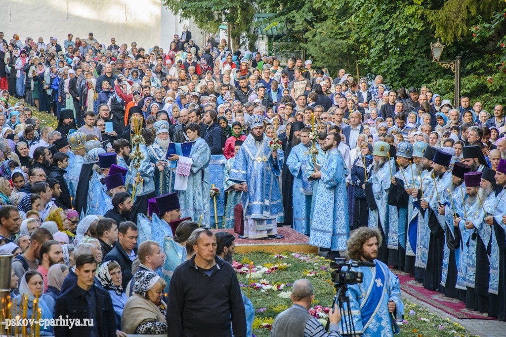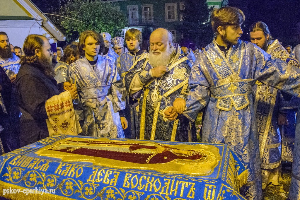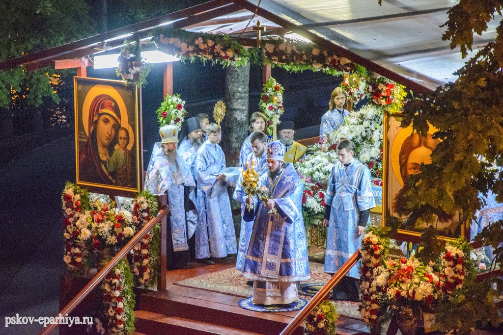 29 августа 2017 года митрополит Псковский и Порховский Евсевий совершил великую вечерню и утреню с чином погребения Плащаницы Пресвятой Богородицы в Свято-Успенском Псково-Печерском монастыре.
