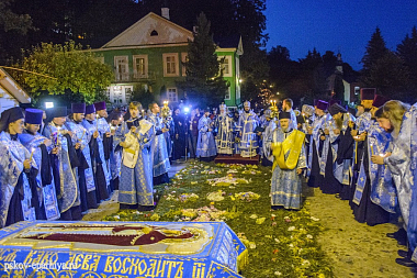 В этот тихий молитвенный вечер мы благодарим Бога, что Он сподобил нас и в этом году совершать это торжество, молиться у иконы Божией Матери одной православной семьей верующих, собравшихся отовсюду, чтобы склонить свои колена, чтобы склонить свои сердца и устремить свои души к лику Пречистой Богоматери. Святые апостолы как самые ближайшие ко Христу и Его Преблагословенной Матери по воле Божией узнали о кончине Пречистой Девы Марии и отовсюду собрались в Гефсиманию, чтобы узреть Ее лик и сподобиться узреть Ее душу, которую, по преданию Церкви, взял Ее Сын в Свои руки и вознес на Небеса. А затем Господь и воскресил Ее, чтобы Она стала нашей Матерью Небесной, спасающей и сохраняющей всех, живущих на земле, была нашей Заступницей, всех скорбящих Радостью и Споручницей перед Престолом Божиим, умоляющей Бога простить наши согрешения, вольные и невольные, и даровать радость земную и радость вечную на Небесах.
