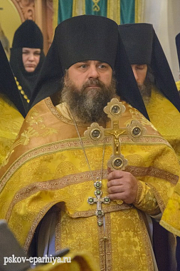 На малом входе Божественной литургии за усердное служение Церкви Христовой митрополит Евсевий удостоил насельника Крыпецкой обители иеромонаха Мардария (Алексеева) правом ношения наперсного креста