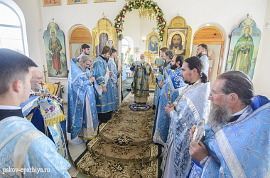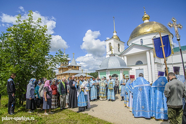 За богослужением молились настоятельница Спасо-Казанской обители игумения Маркелла (Павлова), настоятельница Спасо-Елеазаровского монастыря игумения Евфросиния (Головнева) с сестрами обителей, многочисленные прихожане обители и паломники.