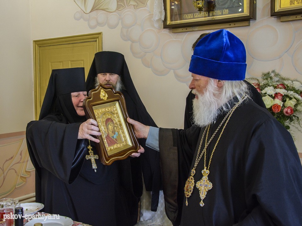 За сугубую радость архиерейского богослужения в престольный праздник настоятельница Спасо-Казанской обители игумения Маркелла преподнесла митрополиту Евсевию образ Пресвятой Богородицы «Казанская» и пожелала многая и благая лета.