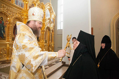 За богослужением молились: заместитель председателя Синодального отдела по монастырям и монашеству, настоятельница Зачатьевского ставропигиального женского монастыря Москвы игумения Иулиания (Каледа), находящаяся в Тамбовской епархии с рабочим визитом; настоятельница Вознесенского женского монастыря г. Тамбова игумения Тавифа (Ковылова) с сестрами; прихожане Вознесенской обители и храмов г. Тамбова.