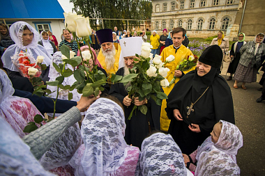По окончании Литургии архипастырь поздравил всех участников богослужения с юбилеем. «В нашей епархии есть более древние обители, но этот монастырь так же славен и почитаем. Его становление и развитие пришлись на вторую половину XIX века, накануне великой смуты. Менее века просуществовала обитель – и случилась эта беда. Богоборческая власть начала рушить храмы, святые обители, кощунствовать в отношении всего, что нам дорого. Но по милости Божией прошла та волна испытаний и настало время возрождения. Слава Богу, что обитель и самое ее сердце – храм – возрождаются», – сказал владыка Феофан.