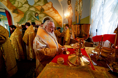 За богослужением была возглашена заупокойная ектения о жертвах террористических актов, память которых вспоминается в начале сентября, в годовщину Бесланской трагедии.