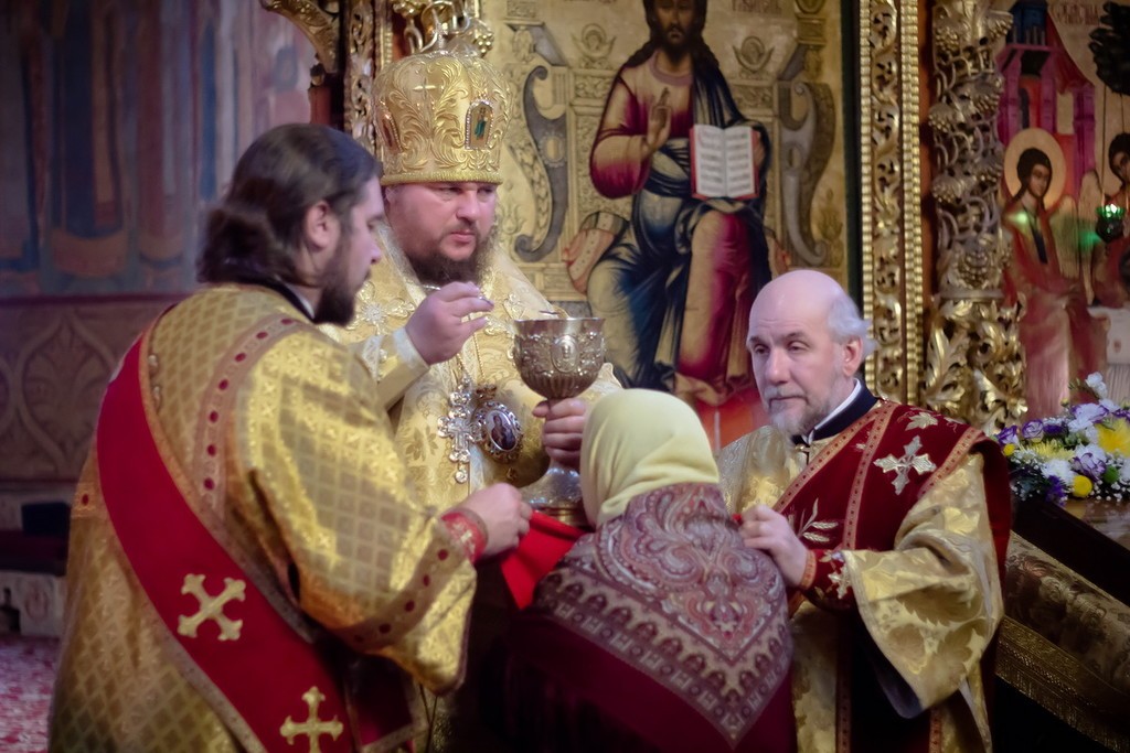 По запричастном стихе иеромонах Филипп (Дюкарев) произнес проповедь перед молящимися.